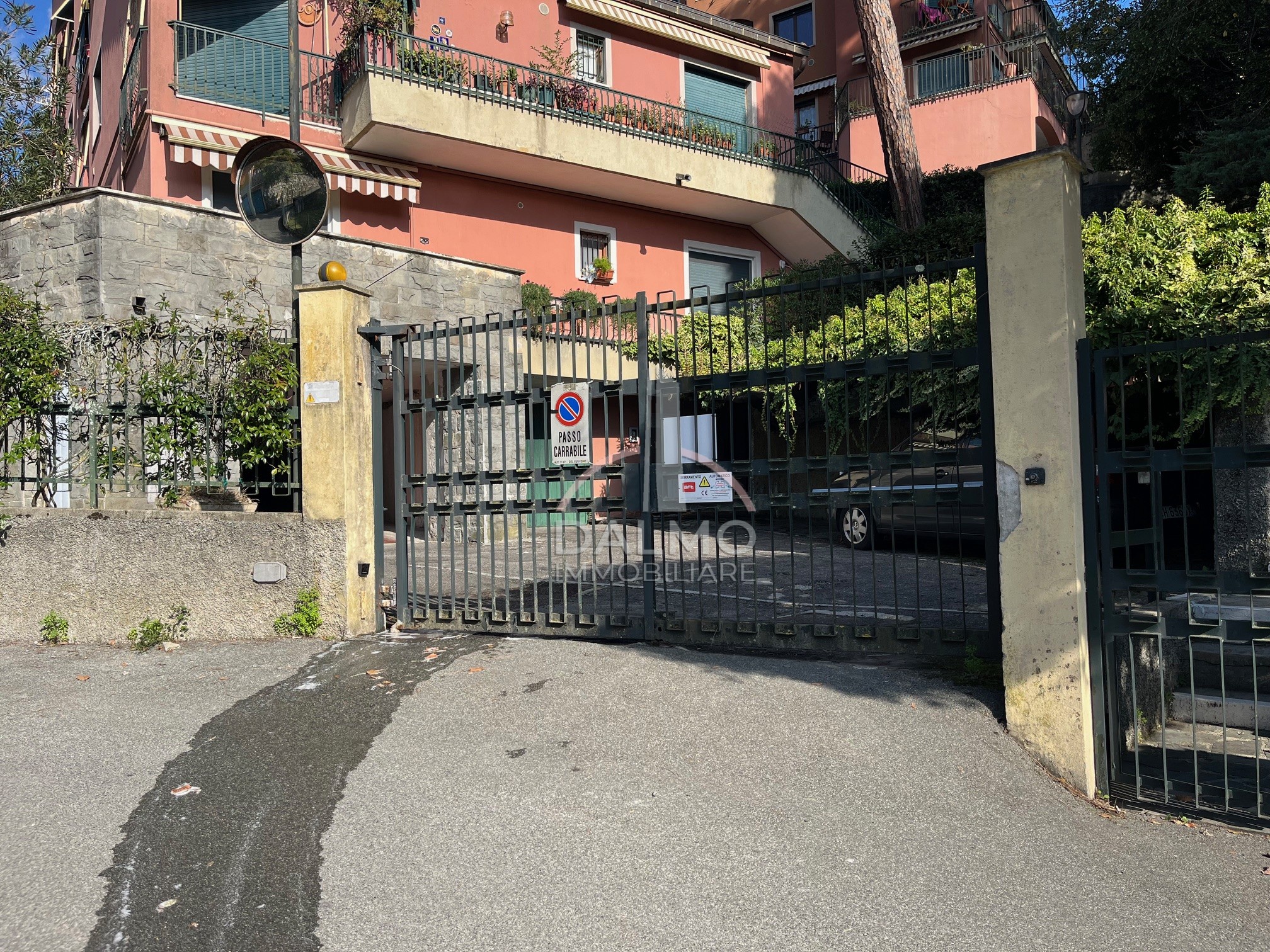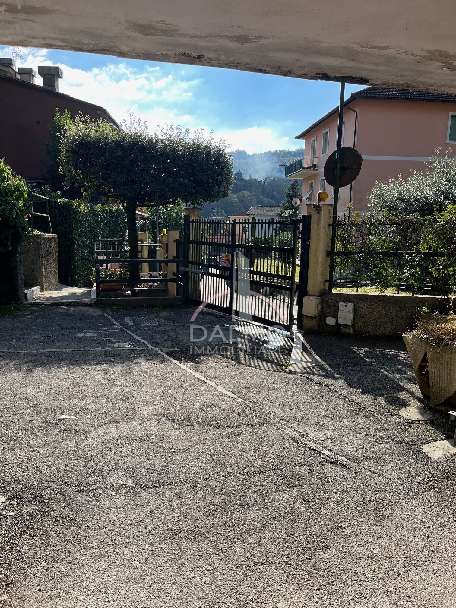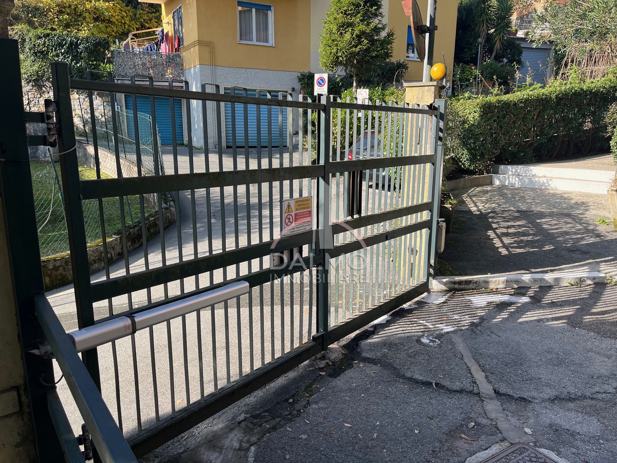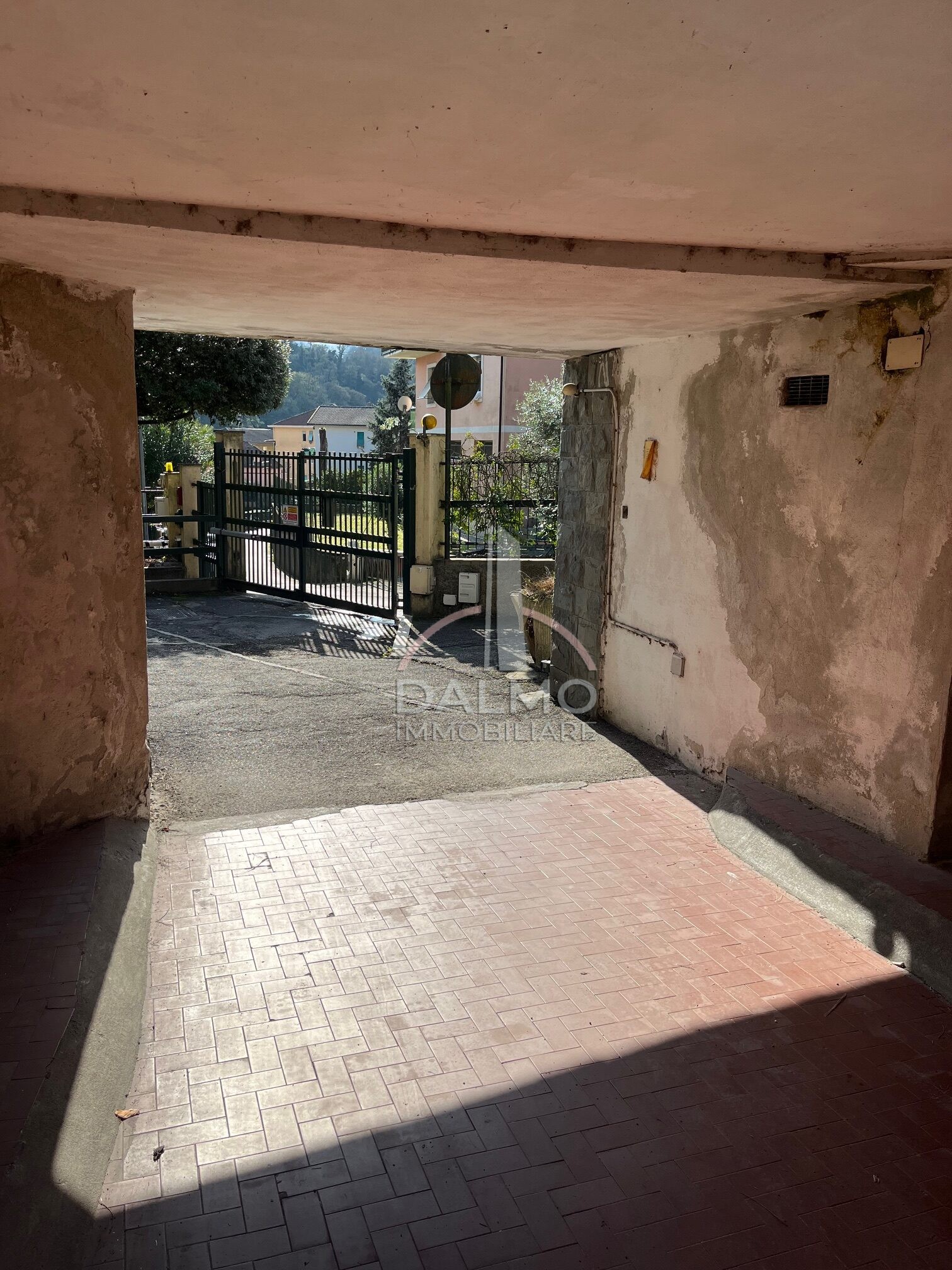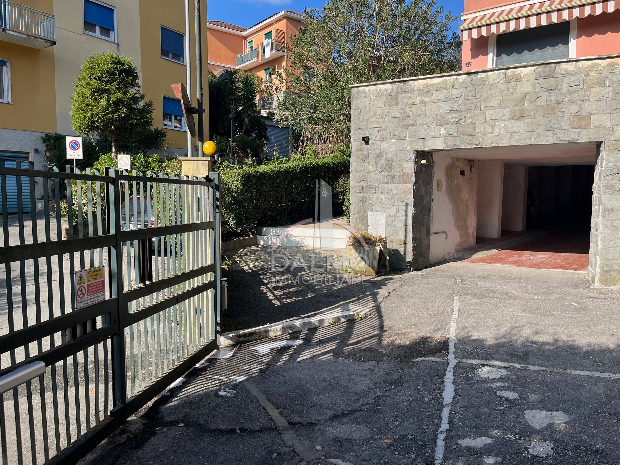 In vendita box auto situato in contesto sicuro e ben organizzato, con accesso protetto da cancello elettrico che conduce all’area di manovra.